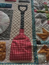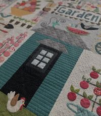 Het huis was vrij groot in deze quilt. Maar door er lijnen in te maken werd die al een stuk levendiger. De dakpannen op het dak maken het helemaal af.