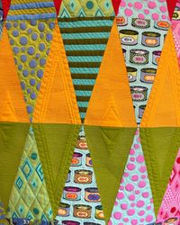 De borders op deze quilt waren groot en leeg, maar door wat halve cirkels en rechte lijnen toe te voegen, wordt het ineens heel levendig.