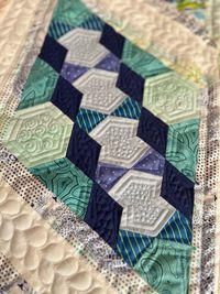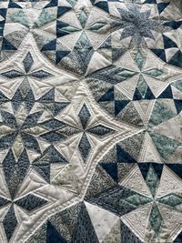 Een detail van de Alaska quilt. Dit is een gebruiksquilt, dus moest niet te intensief. Maar door de wollen tussenvulling blijft de quilt mooi soepel.